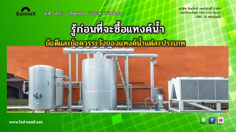 การเลือกรูปแบบและประเภทของแท็งก์น้ำนั้นเป็นเรื่องที่มีความสำคัญ เนื่องจากมันมีผลต่อการใช้งานและความทนทานในระยะยาว ดังนั้น หากคุณยังลังเลหรือไม่มั่นใจเลือกใช้แท็งก์น้ำประเภทใด นี่คือบางข้อเสนอแนะที่อาจจะช่วยให้คุณตัดสินใจได้ถูกต้อง ปรึกษาฟรี LINE ID : @solarD